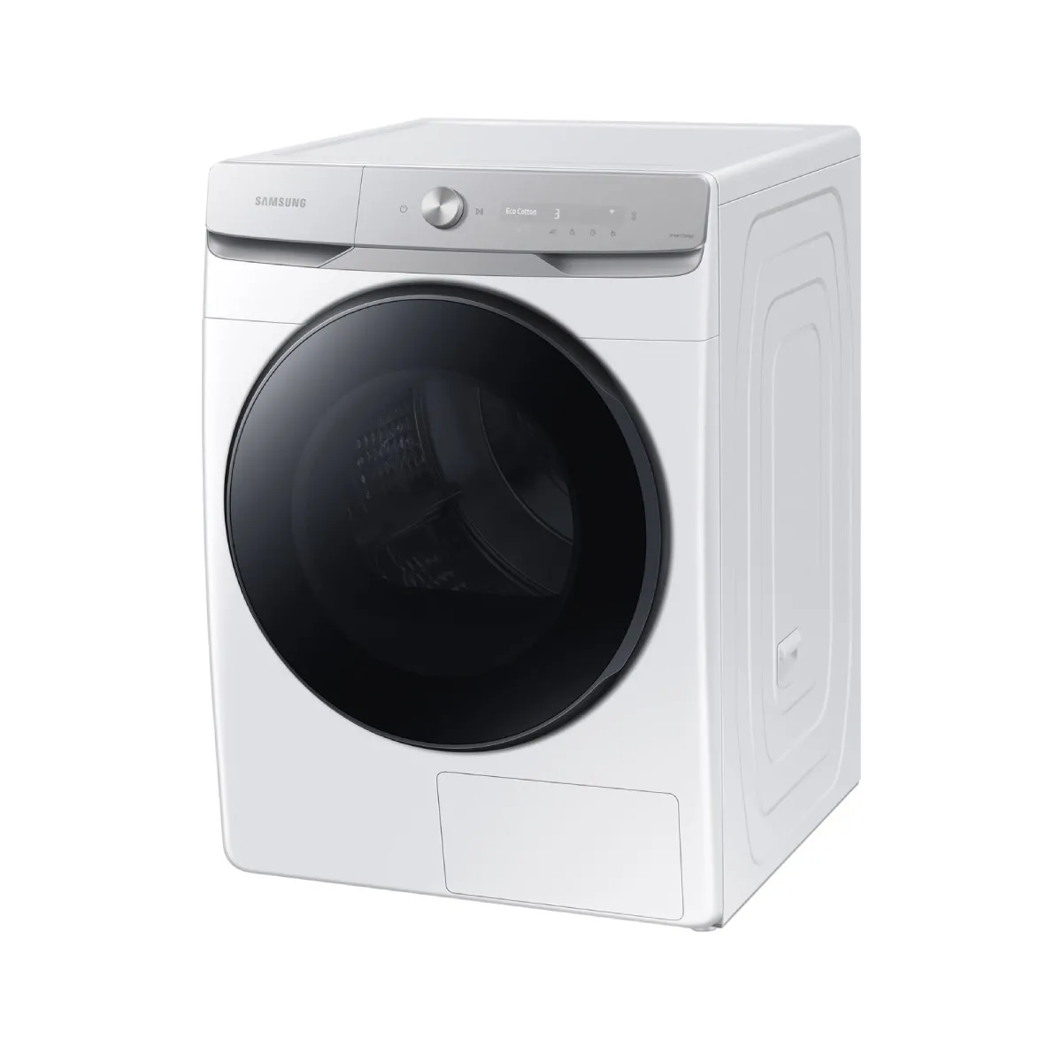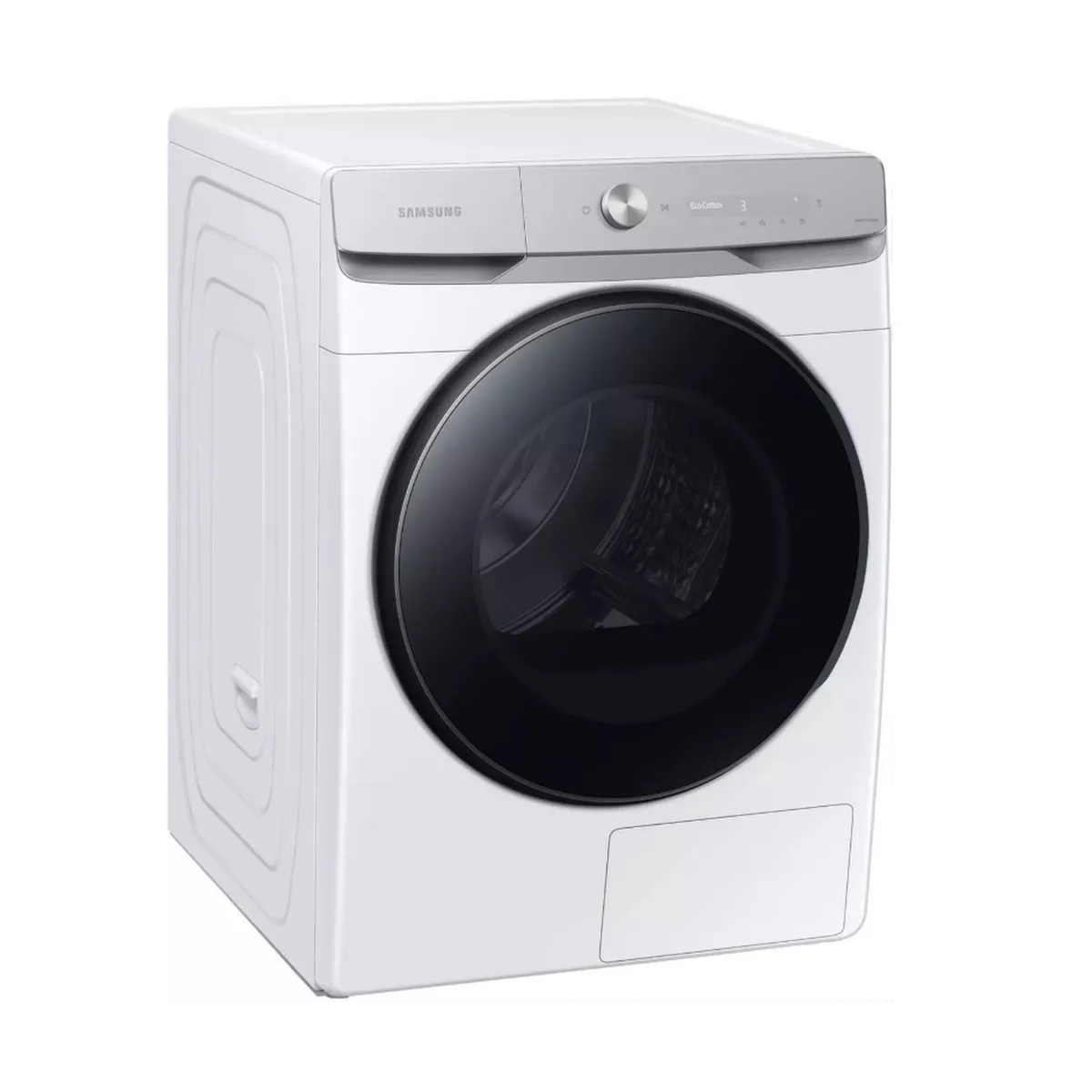 Deze voorladerdroger is ontworpen voor grote ladingen en kan tot 16 kg aan. De hybride warmtepomptechnologie optimaliseert de temperatuur en recirculeert warme lucht. AI Dry-sensoren bewaken continu het vochtigheidsniveau om het droogvermogen aan te passen aan het gewicht en het type wasgoed. De Diamond-trommel van 115 liter biedt ruimte aan lakens, handdoeken of sportkleding, terwijl de Digital Inverter-motor zorgt voor constante prestaties. Dankzij SmartThings Wi-Fi-connectiviteit kunt u de voortgang volgen en instellingen op afstand aanpassen. Met een geluidsniveau van 64 dB, trommelverlichting en een weergave van de resterende tijd voor beter zicht aan het einde van de cyclus, past de droger dankzij de omkeerbare deur gemakkelijk in een wasruimte.