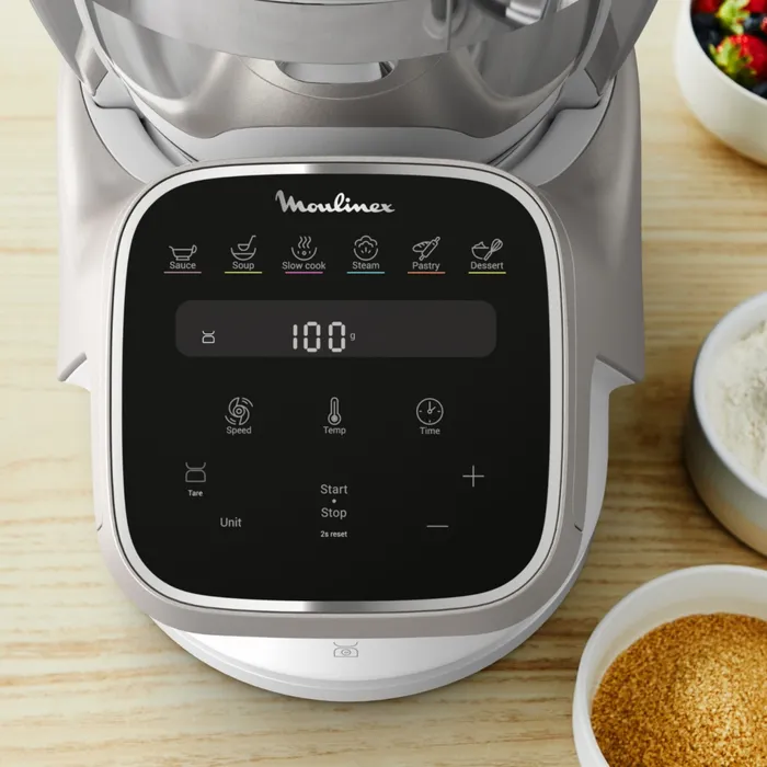 Dankzij de gratis Moulinex-app heeft u toegang tot een onbeperkt aantal recepten om uw dagelijkse menu's te variëren.