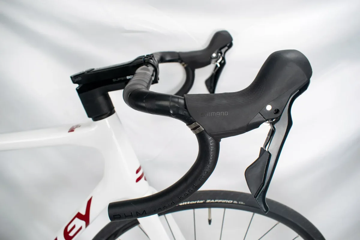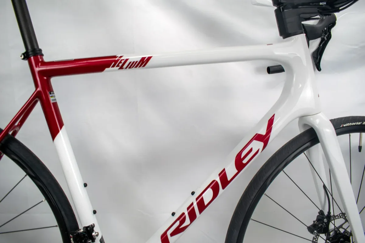 De Helium Disc racefiets heeft een uniek ovaal buizenframe dat de perfecte balans biedt tussen stijfheid, lichtheid en comfort. Dankzij de F-Steerer-technologie zijn alle kabels volledig intern weggewerkt, wat zorgt voor een strak uiterlijk en geen onderhoud vereist.