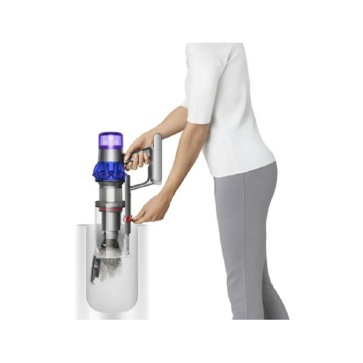 Zuigkracht en gebruiksduur afgestemd op uw behoeften: De motor bereikt 125.000 tpm en levert tot 240 Airwatt in de Boost-stand, handig voor zwaar vervuilde oppervlakken. Bij normaal gebruik biedt de Eco-stand tot 60 minuten gebruiksduur, terwijl de Boost-stand van 5 minuten hardnekkig vuil aanpakt. De 25,2V-accu is clip-on voor eenvoudig gebruik en langere schoonmaaksessies met een extra accu. De laadtijd bedraagt 4 uur en 30 minuten, waardoor u het apparaat op een gepland moment weer kunt gebruiken. Het zakloze ontwerp met een stofreservoir van 0,76 liter zorgt voor snelle stofverwijdering en minimaliseert onderbrekingen.