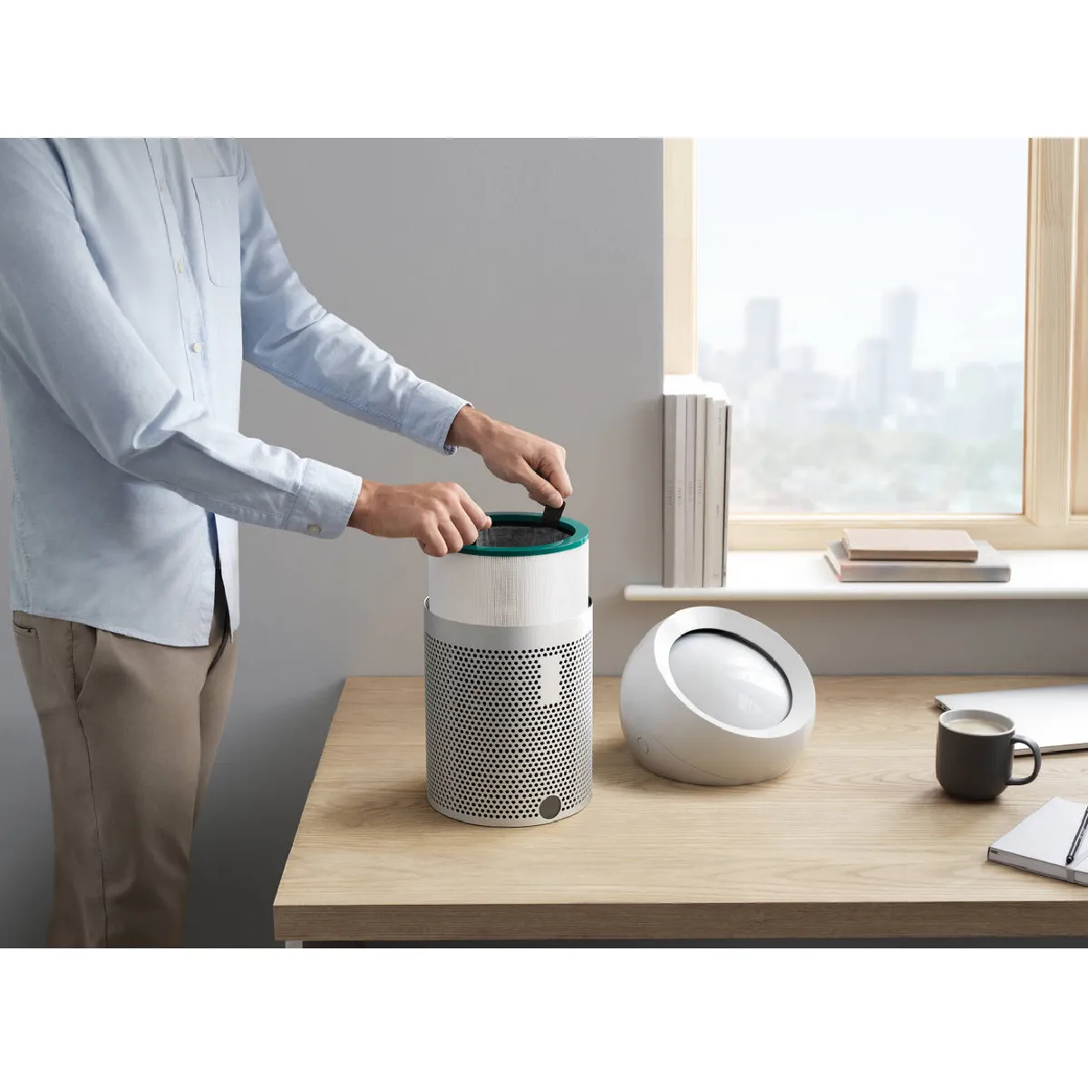 27m² Luchtreinigingsventilator - Pure Cool Me Wit Zilver - De Dyson Pure Cool Me Wit Zilver luchtreinigingsventilator zorgt voor een verfrissend briesje binnen handbereik. Deze persoonlijke luchtreinigingsventilator is ontworpen om de luchtkwaliteit te verbeteren. Het luchtdichte filtersysteem combineert een actief koolstoffilter met een HEPA-filter van glasvezel. Samen vangen ze gassen en ultrafijne deeltjes uit de lucht op. Vervolgens gebruikt de ventilator de Dyson Core Flow™-technologie om een verfrissende stroom gezuiverde lucht precies daar te projecteren waar u die nodig hebt.