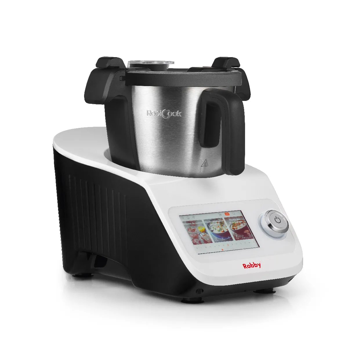 Het 5-inch kleurenscherm en de navigatieknop bieden een duidelijke interface voor het creëren, aanpassen en naadloos overschakelen tussen stappen. Wi-Fi-connectiviteit maakt toekomstige updates en nieuwe recepten mogelijk. De handmatige modus is direct na het opstarten beschikbaar, waarmee u de snelheid, temperatuur en kooktijd naar wens kunt aanpassen. Het apparaat wordt geleverd met een extra originele RobiCook-compatibele kom voor het snel wisselen tussen zoete en hartige gerechten zonder ingrediënten over te hoeven gieten.