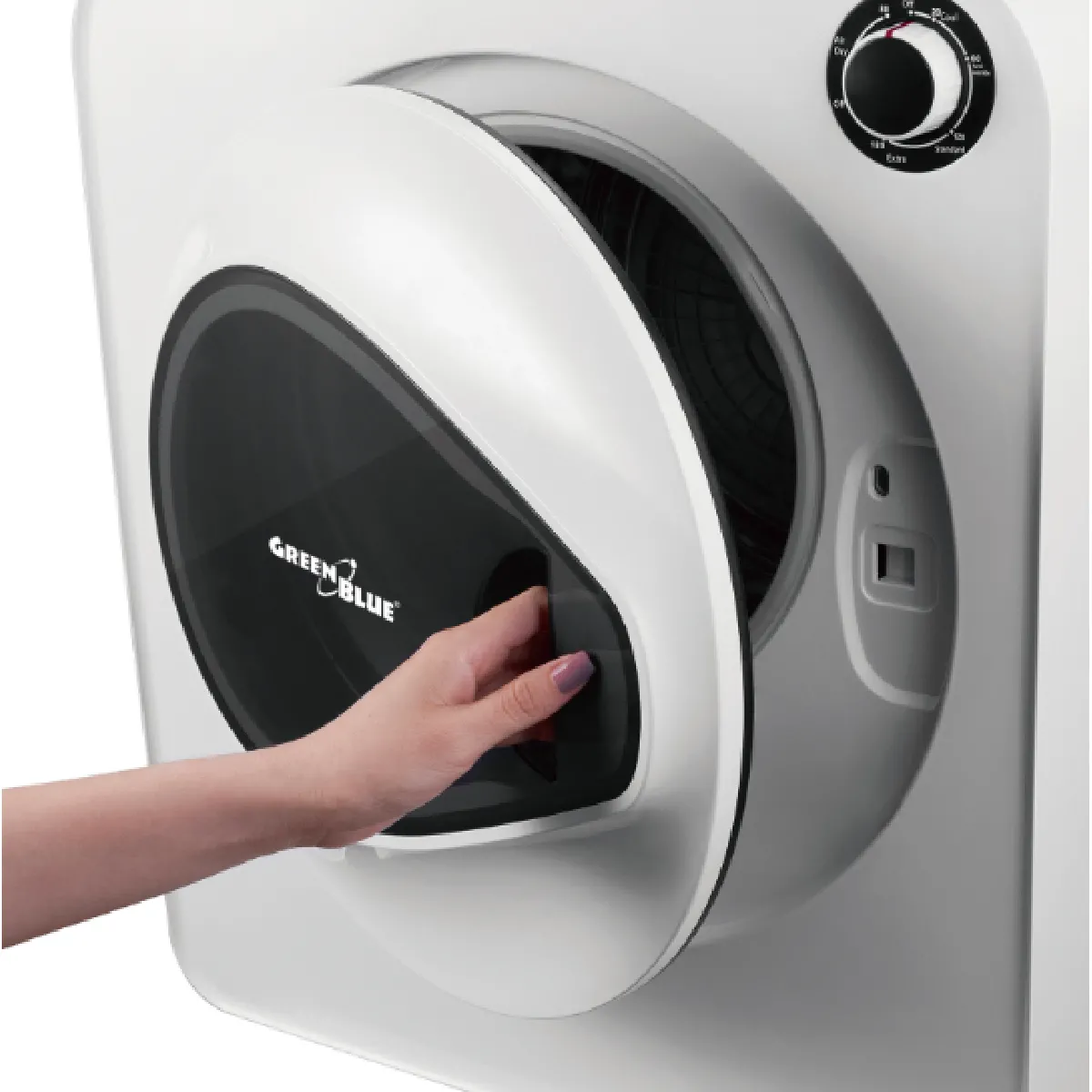 De keuzeknop biedt 5 duidelijk gelabelde opties voor snelle instelling zonder ingewikkelde aanpassingen. De stand "Koude lucht" verfrist delicate of licht gedragen kledingstukken. De stand "Koel" zorgt voor een verkoelend effect aan het einde van de cyclus, waardoor kledingstukken gemakkelijker en veiliger uit de droger kunnen worden gehaald. De stand "Kreukvrij" is geschikt voor overhemden, delicate stoffen en beddengoed en minimaliseert kreukels gedurende cycli van 30 tot 60 minuten.