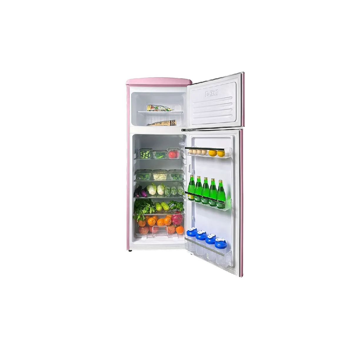 De slanke afmetingen van 55 cm breed en 144 cm hoog optimaliseren de ruimte en bieden een netto volume van 206 liter, ideaal voor een compacte keuken. Het vriesvak bovenin en het koelgedeelte van 162 liter maken dagelijkse toegang gemakkelijk. Statische koeling zorgt voor eenvoudig onderhoud, terwijl energiezuinige ledverlichting de zichtbaarheid op elke plank verbetert. Het geluidsniveau van 39 dBA zorgt voor discreet gebruik in een studio-appartement of open woonruimte. Het roze design, gecombineerd met zilveren details en vaste handgrepen, past naadloos in een modern of retro interieur zonder visuele rommel.