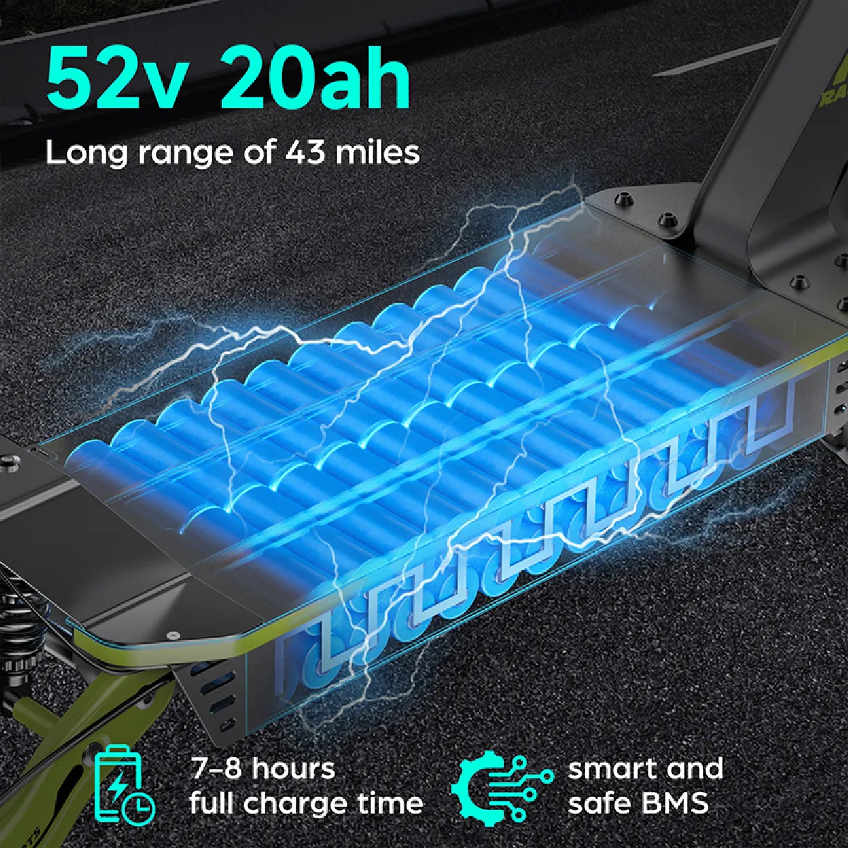 Uitgerust met een lithiumbatterij met hoge capaciteit, goed voor een actieradius van 60 tot 70 kilometer.