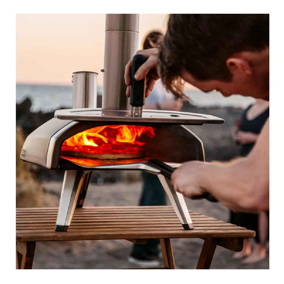 Ten eerste is het een ruimtebesparende oven in vergelijking met een traditionele pizzaoven. De Ooni Fyra 12 is circa 39 cm breed, 52 cm diep en 74 cm hoog (29 cm zonder schoorsteen) en weegt slechts 10 kg. Omdat hij niet op gas of elektriciteit werkt, is hij zelfs draagbaar, waardoor je bijna overal pizza's kunt bakken.