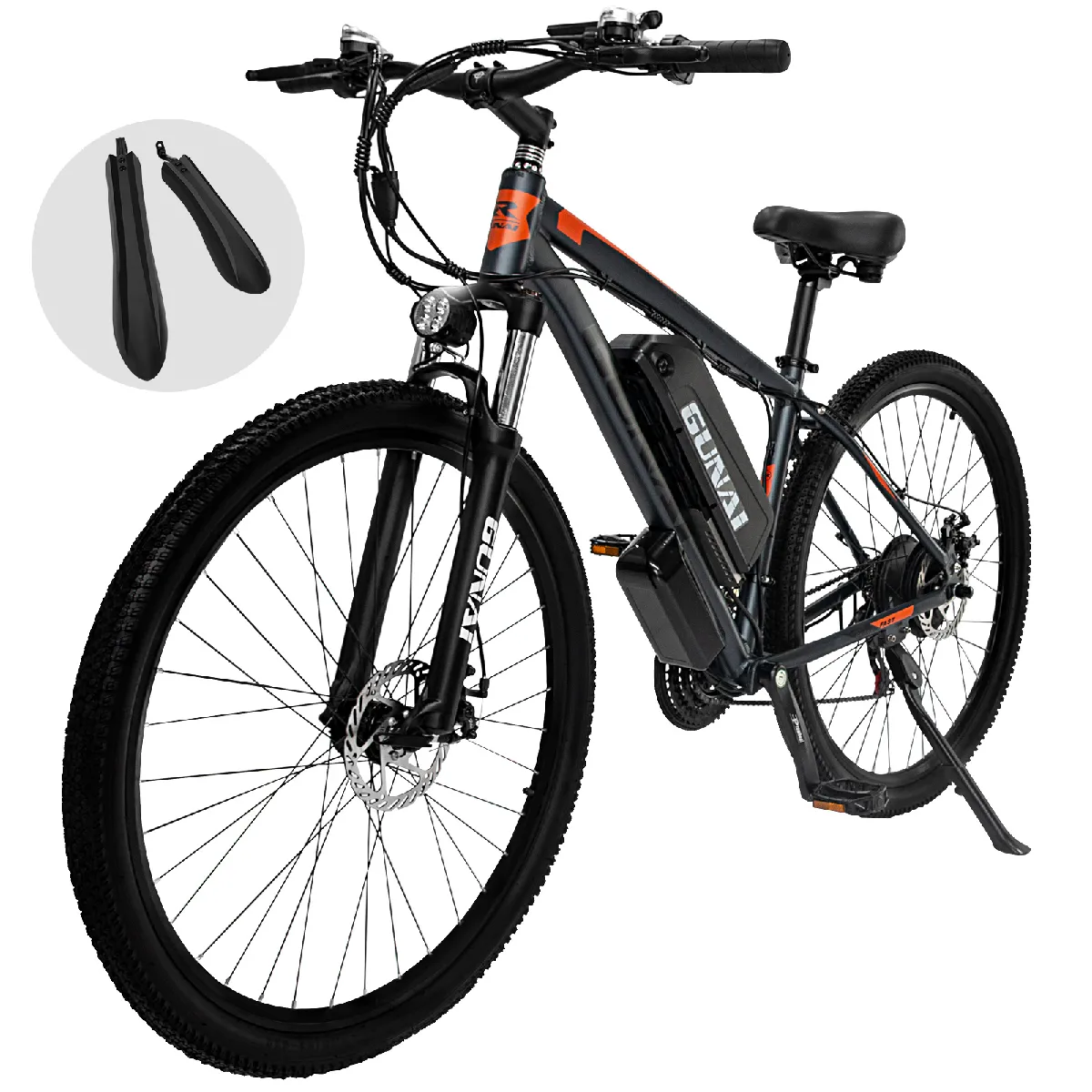 De 29-inch GUNAI GN29 elektrische fiets voor volwassenen is voorzien van een krachtige 48V 750W borstelloze motor die een robuust koppel van 50 Nm genereert voor uitzonderlijke acceleratie. Perfect voor een elektrische mountainbike of e-bike, bereikt hij een opwindende topsnelheid van 50 km/u.