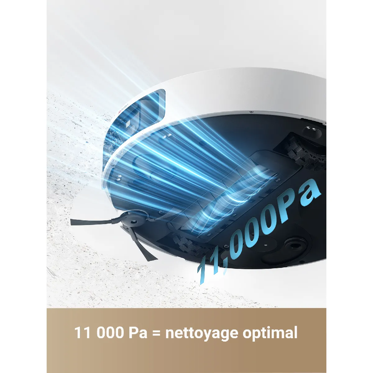 Huishoudelijke klusjes worden eenvoudiger dankzij de krachtige zuigkracht van 11.000 Pa in combinatie met automatisch dweilen. Deze robot combineert automatisch legen en dweilen met warm water van 65 °C om ingrijpen te minimaliseren. De SideReach- en MopExtend-technologieën zorgen ervoor dat hij hoeken, plinten en plekken onder lage meubels kan bereiken, terwijl een RGB-sensor de reiniging aanpast aan de mate van vervuiling. Ontworpen voor harde vloeren en tapijten, integreert hij naadloos in slimme huisautomatiseringssystemen en kan hij met spraak worden bediend. Het laadstation vergroot de dagelijkse autonomie door de dweilpads met hete lucht te drogen en het water en de reinigingsoplossing bij te vullen.